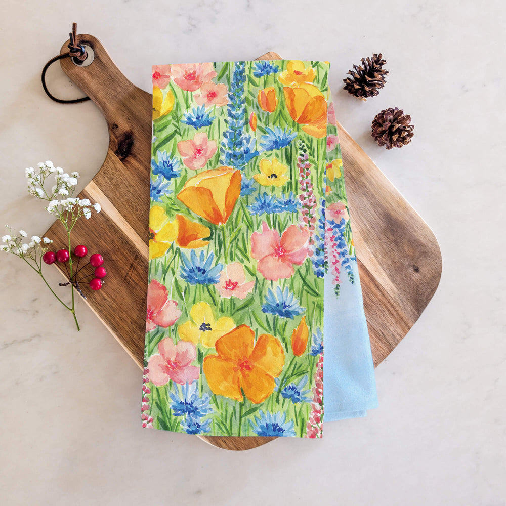 I paint every design by hand in my home studio, then print them on cards, art prints, tea towels, and stickers so they can get out into the world. Onto your walls, into your kitchen, and into the mailbox of someone who needs a good card.