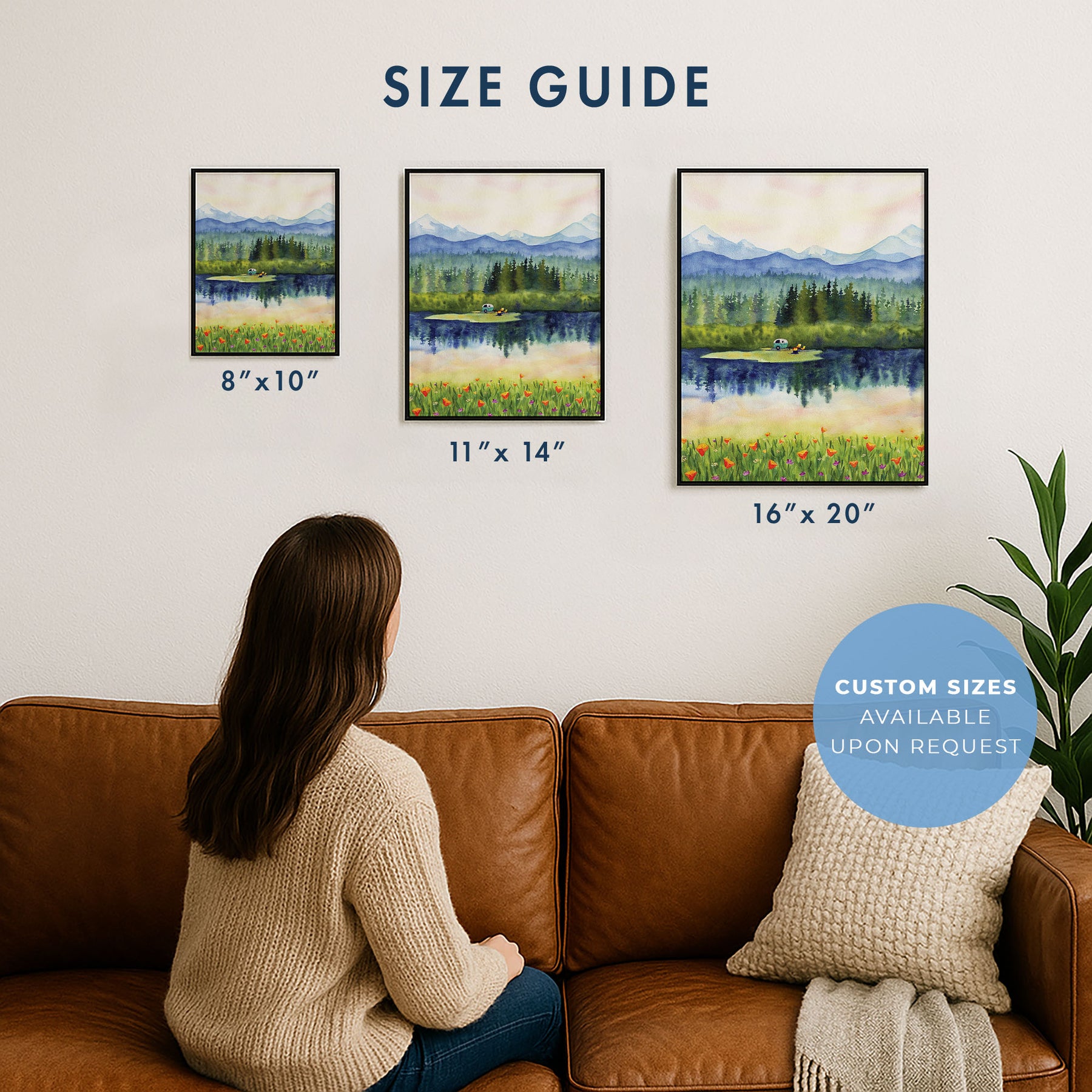 + Size | frame-ready sizes including 8x10, 11x14, 16x20, or 18x24